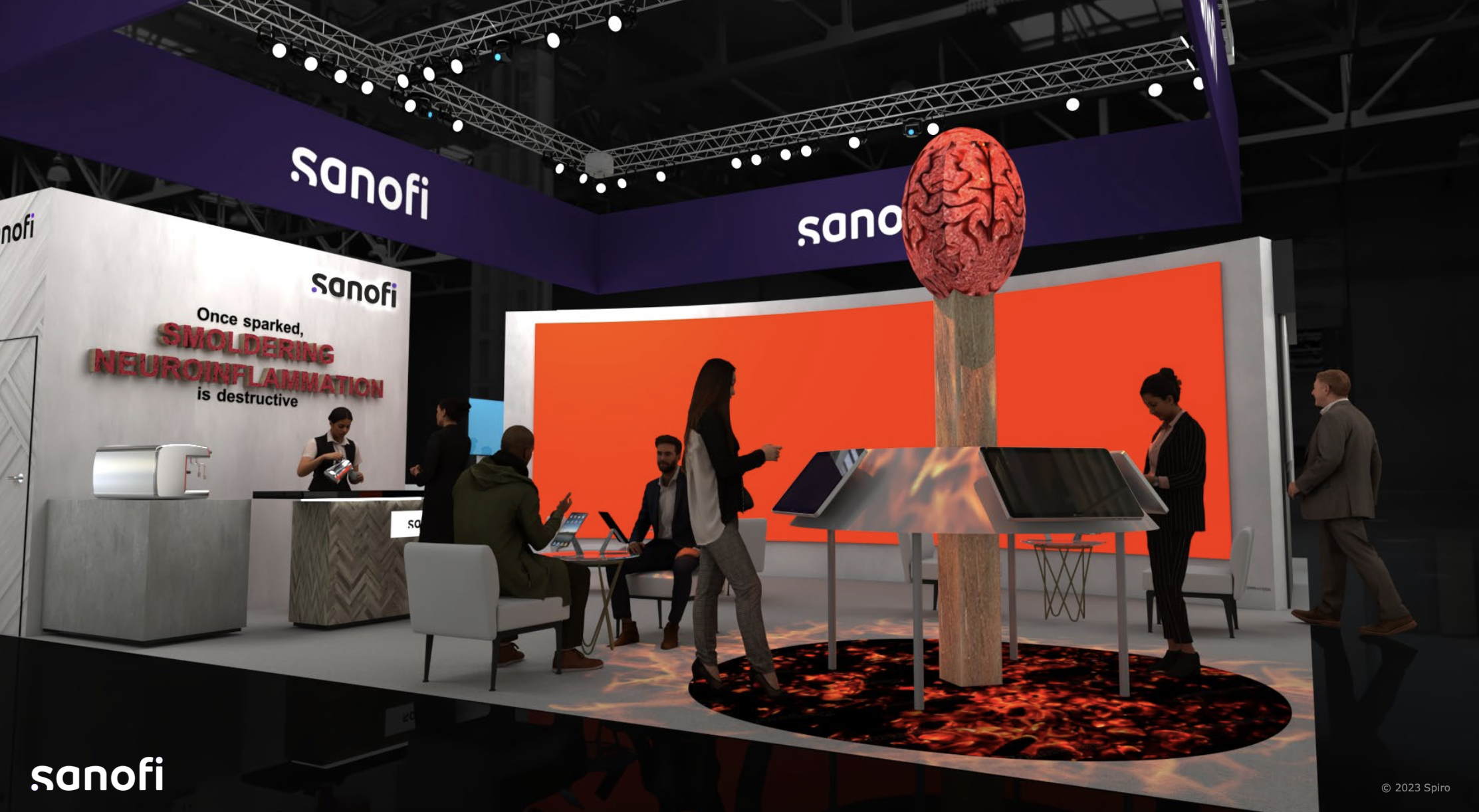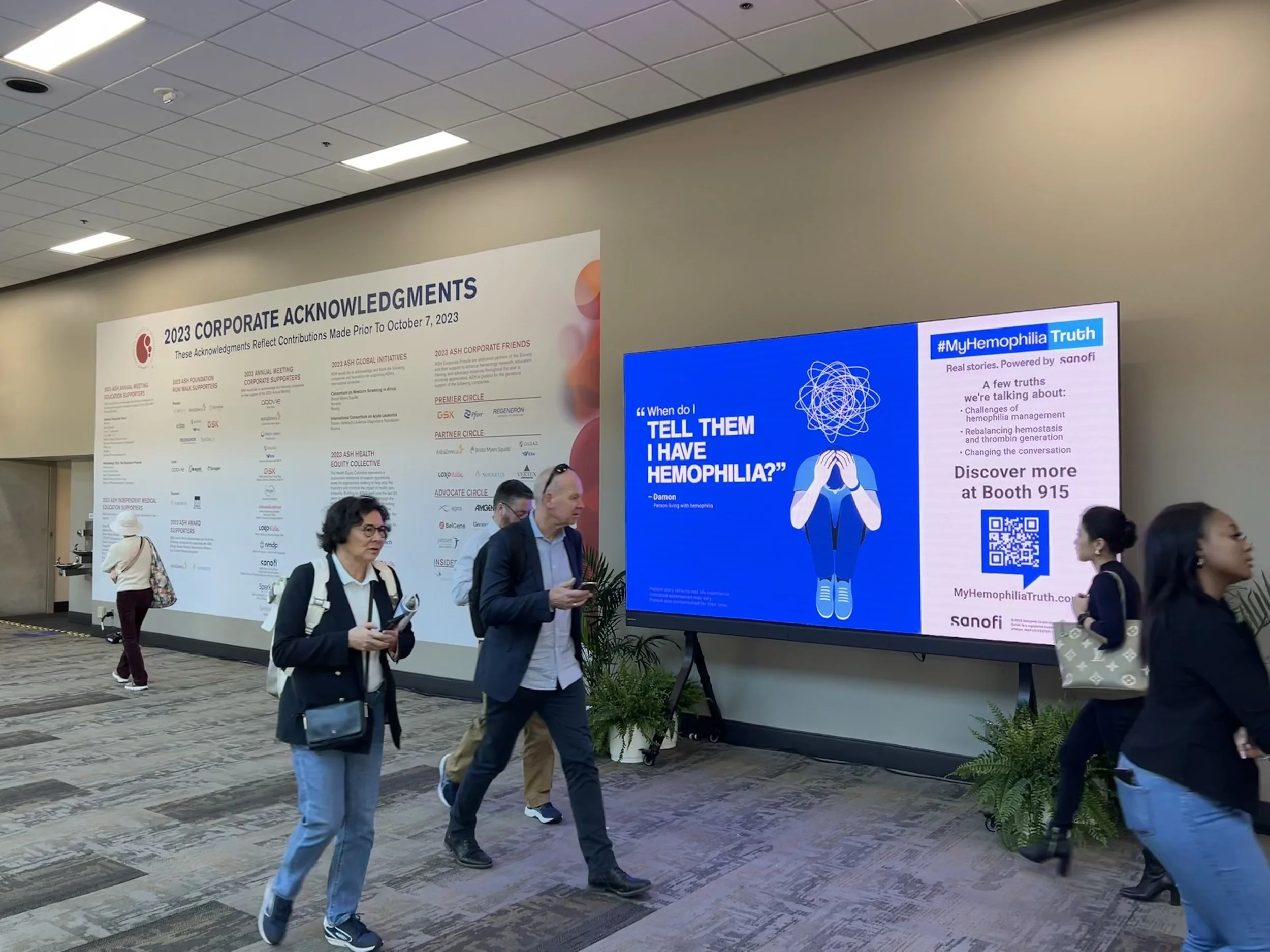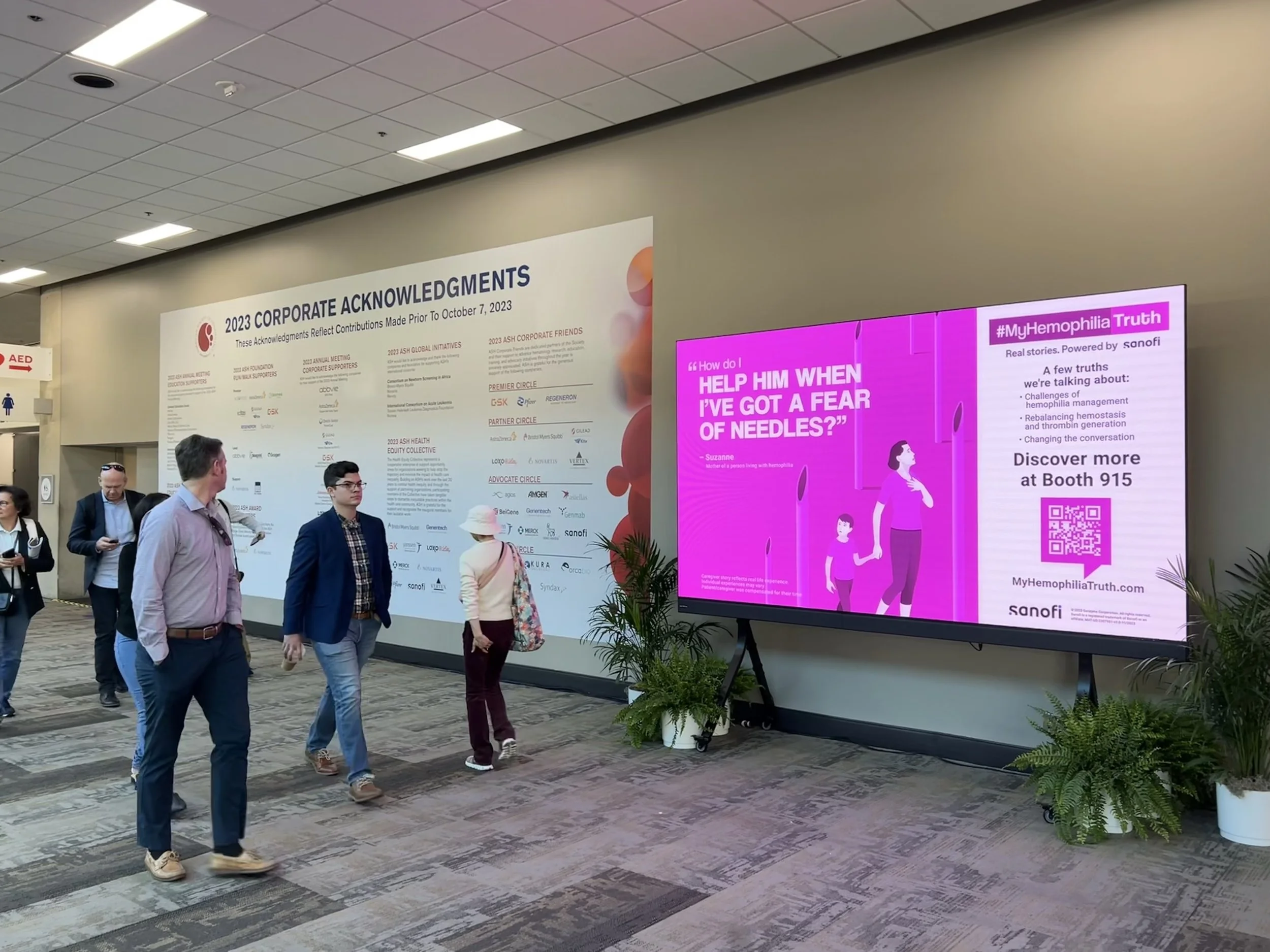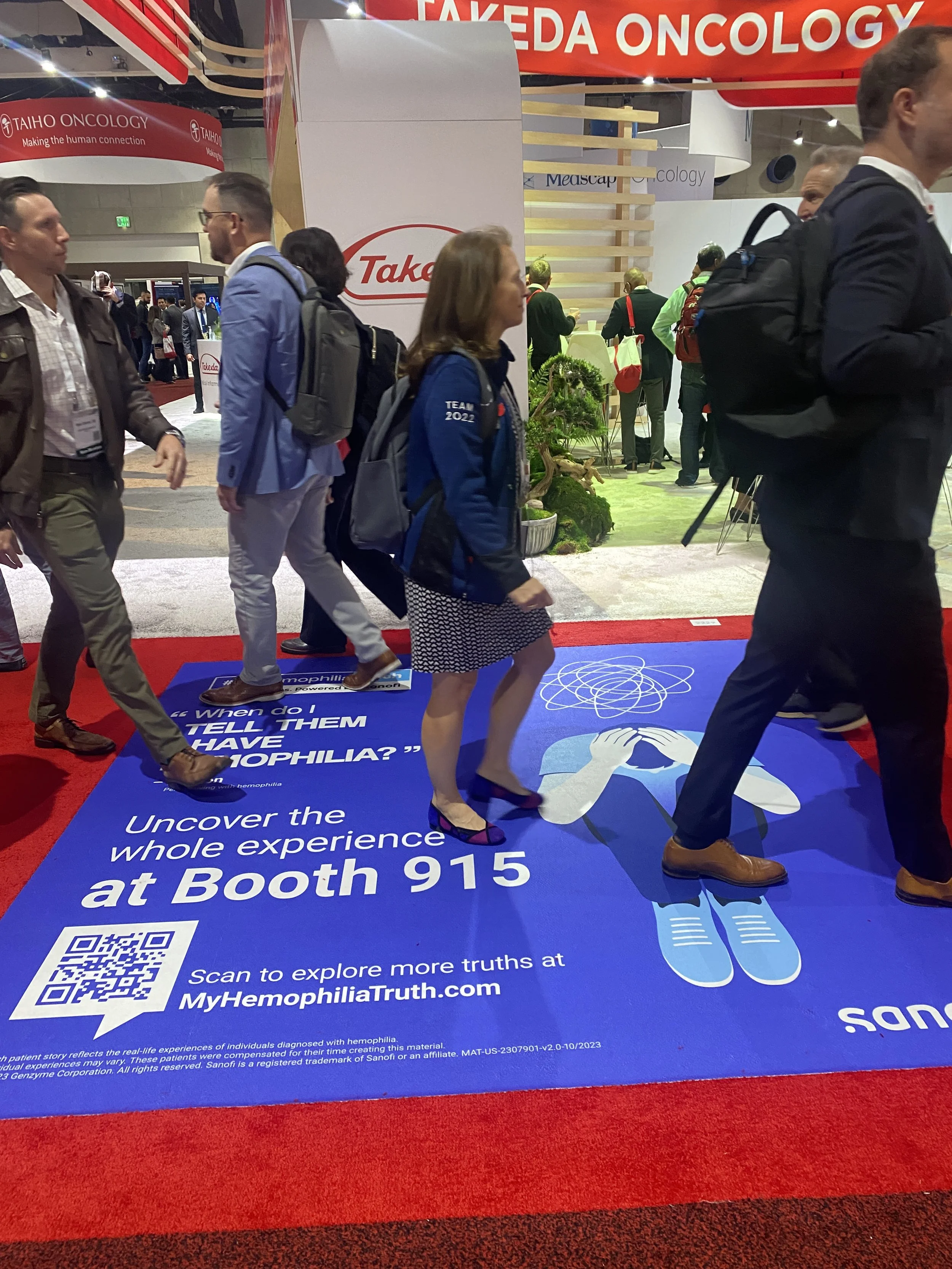 ASH 2023 #MyHemophiliaTruth booth: interactive touchscreen game, carpet, and video ads